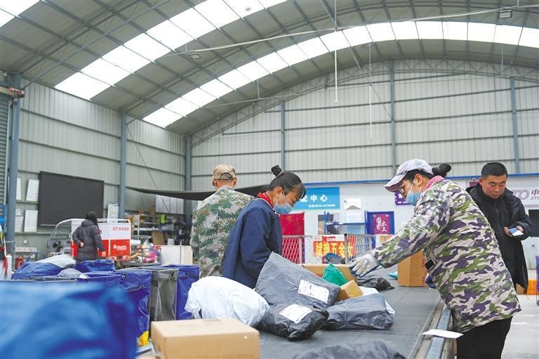 工作人員在菜鳥鄉(xiāng)村農(nóng)產(chǎn)品上行中心和共配中心綜合體分揀包裹(資料照片)通訊員 薛凱岳 攝