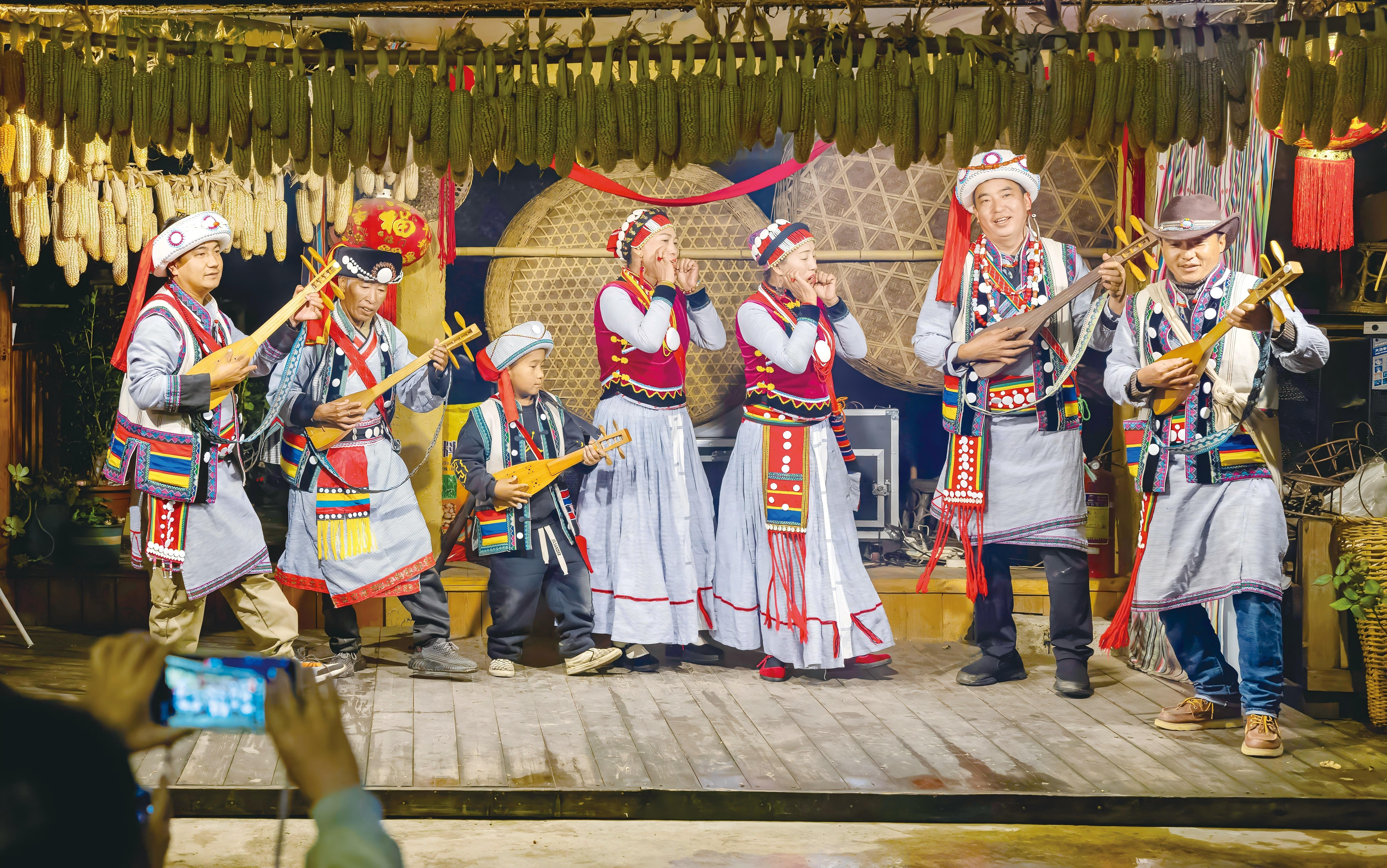 為此,他全身心投入到“非遺+旅游”融合發(fā)展的新路子中。他在民宿中設置了怒族文化展示廳,展示以往的農耕生產生活用具。與此同時,他還組建了非遺展演隊,成員涵蓋了經驗豐富的非遺代表性傳承人、德高望重的老藝人,中青年村民和七八歲的孩子,大家共同參與,形成了一條傳承的紐帶。