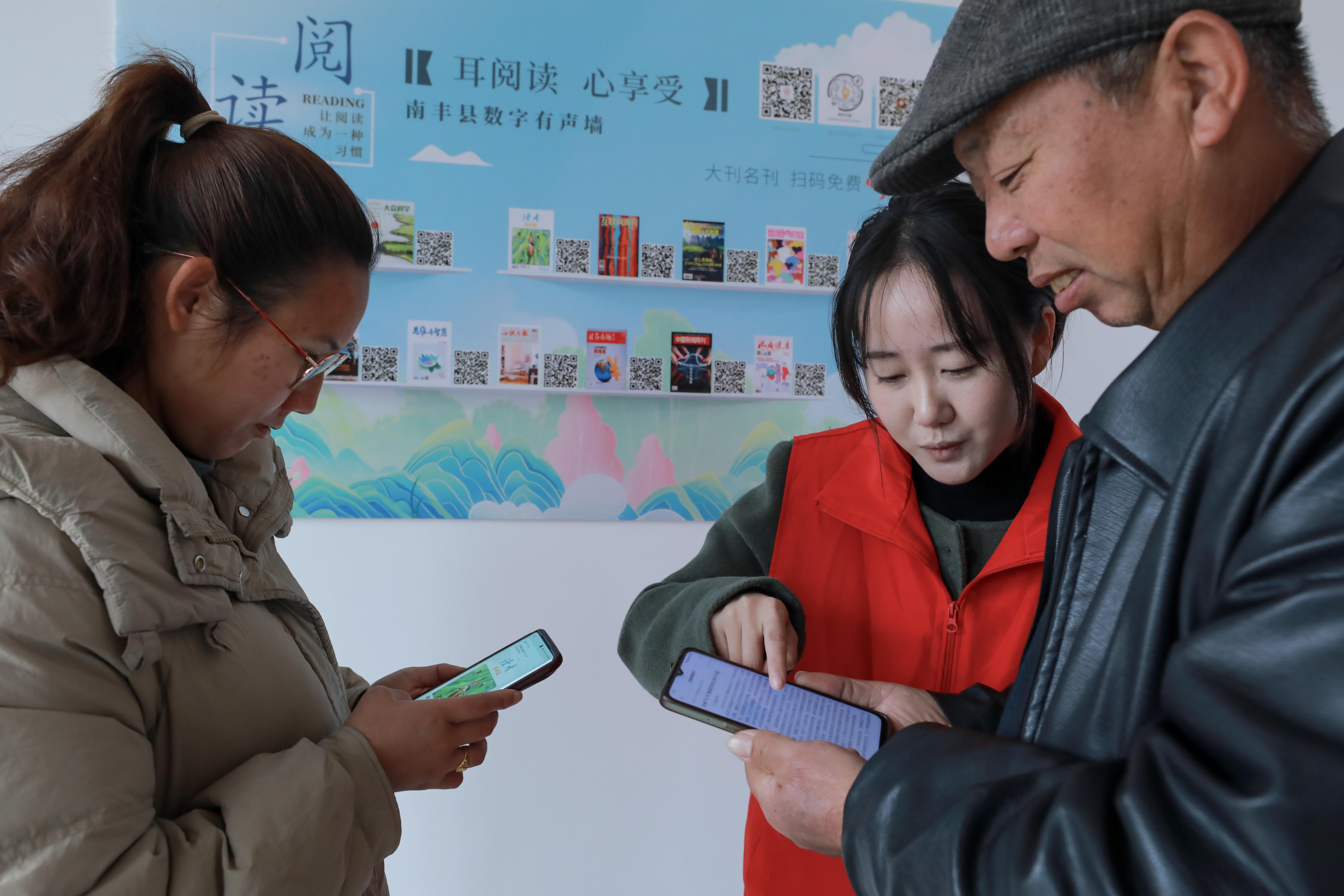 志愿者在農家書屋指導村民使用數(shù)字閱讀軟件