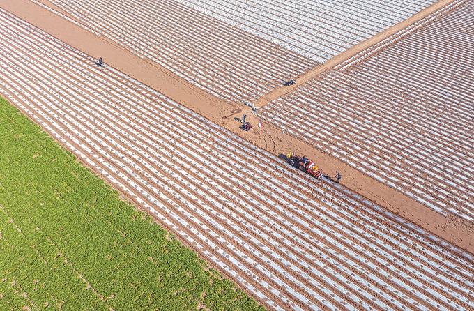 泗洪縣雙溝鎮(zhèn)雪三村花生種植基地機(jī)械化春耕場景。張連華 攝