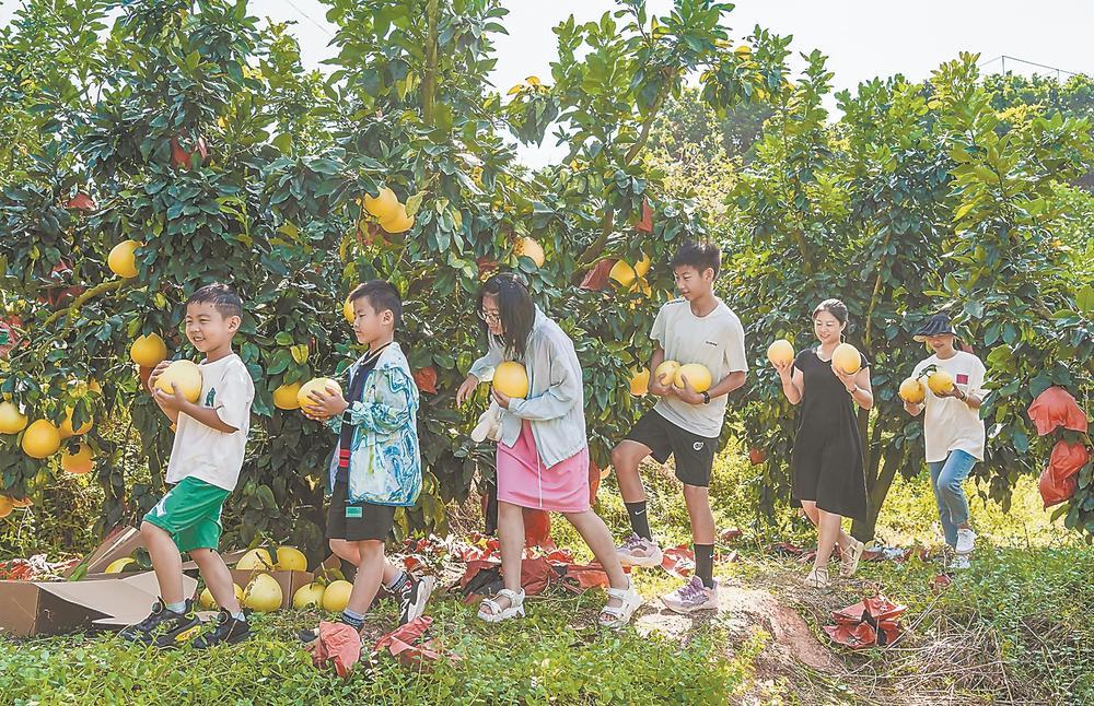 陳海彬的農(nóng)場位于汀溪鎮(zhèn)西源村,占地近300畝,種植橘柚、葡萄柚、臺灣金煌芒果、果凍橙、楊桃等多種水果。過去,農(nóng)場主要依賴批發(fā)銷售,而隨著汀溪鎮(zhèn)農(nóng)文旅融合的推進(jìn),如今前來體驗采摘的游客日益增多。
