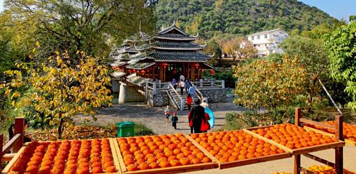 漫步紅巖村,瑤寨風雨橋古韻悠長,整潔的村道串聯(lián)起85棟白墻黛瓦的庭院民宿。村內(nèi)配套客房超300間、農(nóng)家樂50余家,游客可體驗柿餅制作、探訪柿子博物館,或在文化主題街選購柿染工藝品?!霸率廉a(chǎn)業(yè)鏈每延伸一環(huán),產(chǎn)值就翻一番。”縣長楊征山介紹,近年來,恭城依托“中國月柿之鄉(xiāng)”、全國月柿主產(chǎn)區(qū)的產(chǎn)業(yè)優(yōu)勢,不斷引進精深加工技術(shù),已開發(fā)出柿子汁、柿子醋、柿子精華液、面膜等系列產(chǎn)品,產(chǎn)品附加值進一步得到提高。“目前,全縣有月柿初、精深加工企業(yè)1054家,品牌企業(yè)20家,建成農(nóng)產(chǎn)品倉儲保鮮冷鏈設施234座、電子商務服務站點160多個?!?/p>