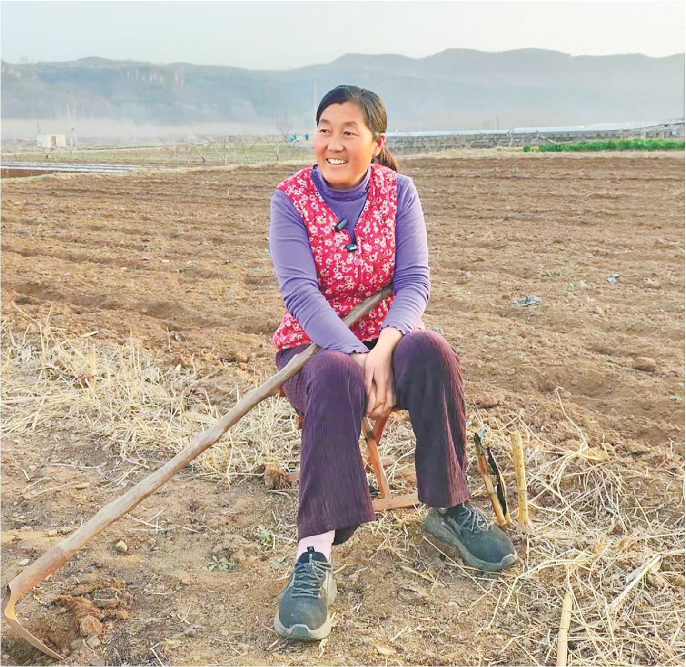 3月23日,呂玉霞在蒙陰縣田間接受采訪。記者 張煥辰 報道