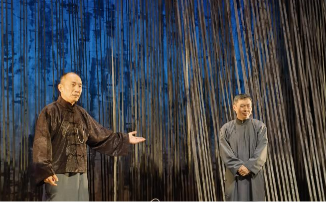 2025年3月末,由方旭、郭笑主演的話劇《老李對(duì)愛的幻想》在北京老舍劇場(chǎng)成功展演。該劇改編自老舍同名長(zhǎng)篇小說(shuō)《離婚》,講述主人公小“智識(shí)”分子老李掙扎于詩(shī)意幻想和庸俗實(shí)際,在傳統(tǒng)和變革進(jìn)退兩難的苦悶中,經(jīng)由一起“政治”暗殺促成自我蛻變的無(wú)奈故事。劇中著力表現(xiàn)民國(guó)離婚鬧劇風(fēng)潮下,小市民的情感困境及文化心態(tài),正如老李的舞臺(tái)形象:一身灰色長(zhǎng)衫,圍著藍(lán)色圍巾——灰藍(lán)色在老舍筆下是“最不得人心的”,因?yàn)椤耙挥錾详?yáng)光管保只剩下灰,一點(diǎn)也不藍(lán)”。