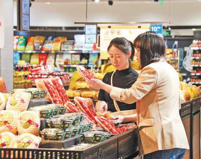消費(fèi)者在匯星廣場的超市采購。唐巍 攝