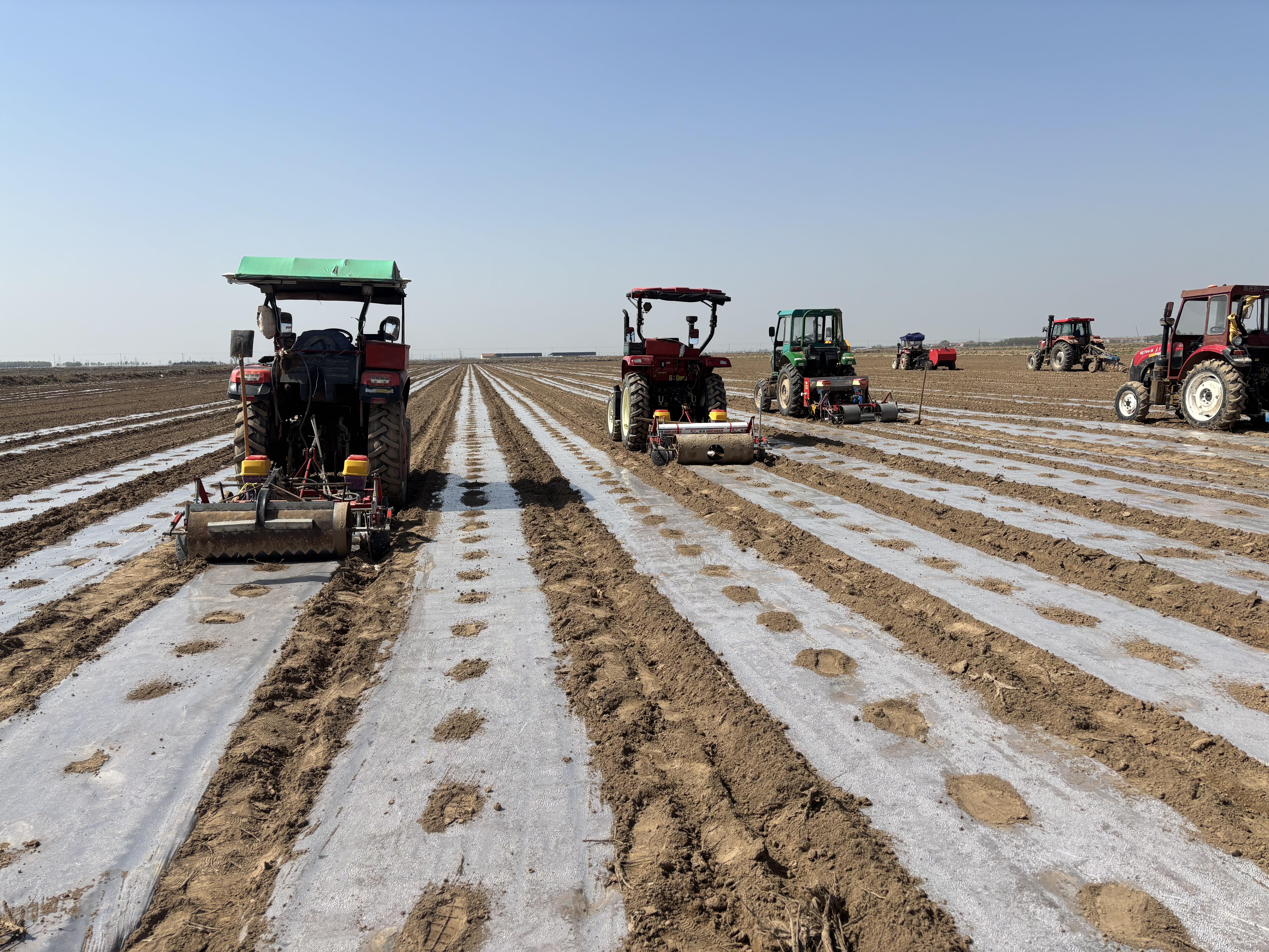 在利津春喜農(nóng)機(jī)專業(yè)合作社3萬多畝機(jī)采棉種植基地,搭載北斗導(dǎo)航的無人駕駛播種機(jī)往來穿梭,同步完成鋪膜與播種作業(yè)。與傳統(tǒng)模式不同,合作社首次啟用“播種后膜上打孔一體機(jī)”,徹底告別播種后依賴人工開膜放苗的歷史。