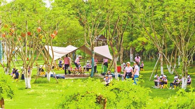 4月28日,銅梁區(qū)南城街道西來村西郊露營基地。