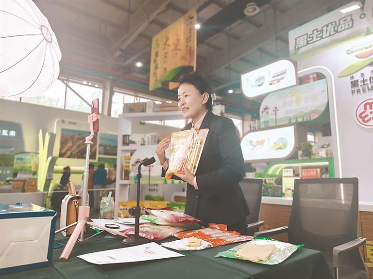 展區(qū)一側(cè),設(shè)立了黑龍江省婦聯(lián)、省農(nóng)投集團(tuán)聯(lián)手打造的“村村女主播 鄉(xiāng)鄉(xiāng)巾話筒”哈洽會直播帶貨。哈洽會期間,15位超能女主播火力全開,連續(xù)5天、每天8小時不間斷帶貨。主播們輪番上陣,將手機(jī)鏡頭化作連通城鄉(xiāng)的金橋。
