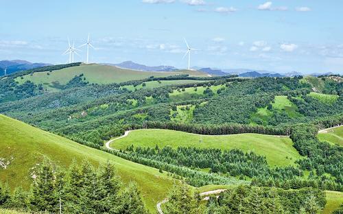 5月24日拍攝的豐寧滿族自治縣的森林和風(fēng)電場。記者 陳寶云 攝