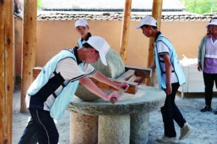 神玉村的名氣越來越響,許多研學(xué)團(tuán)也紛至沓來。記者到訪時(shí),180多名黃龍縣初級(jí)中學(xué)初二的學(xué)生正在神玉村開展研學(xué)活動(dòng),他們動(dòng)手磨豆?jié){、包餛飩、生火做飯,感悟“一粥一飯,當(dāng)思來之不易”的道理。