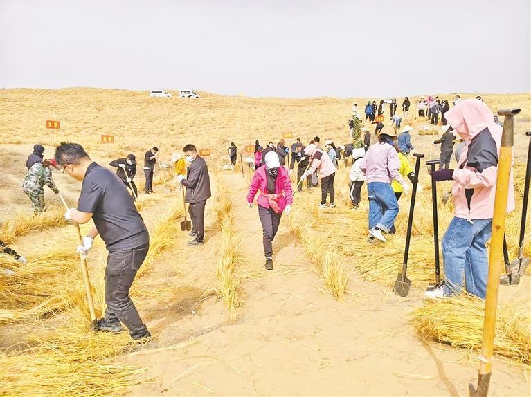 協(xié)同治理的突破,激活了多元力量的參與。平羅縣依托林長(zhǎng)制搭建的協(xié)同平臺(tái),將各級(jí)林長(zhǎng)責(zé)任區(qū)與治沙任務(wù)精準(zhǔn)對(duì)接,通過建立黨建帶林建工作機(jī)制,引進(jìn)社會(huì)資本參與后期養(yǎng)護(hù)管理?!?月25日,金融系統(tǒng)的研學(xué)團(tuán)隊(duì)來這和我們一起扎草方格、種樹苗,大家干得熱火朝天!此外,青年志愿者隊(duì)伍也絡(luò)繹不絕……”王建保說,“林長(zhǎng)制就像一根‘指揮棒’,將各方力量擰成一股繩,讓治沙從‘單打獨(dú)斗’升級(jí)為全社會(huì)協(xié)同作戰(zhàn)?!?/p>