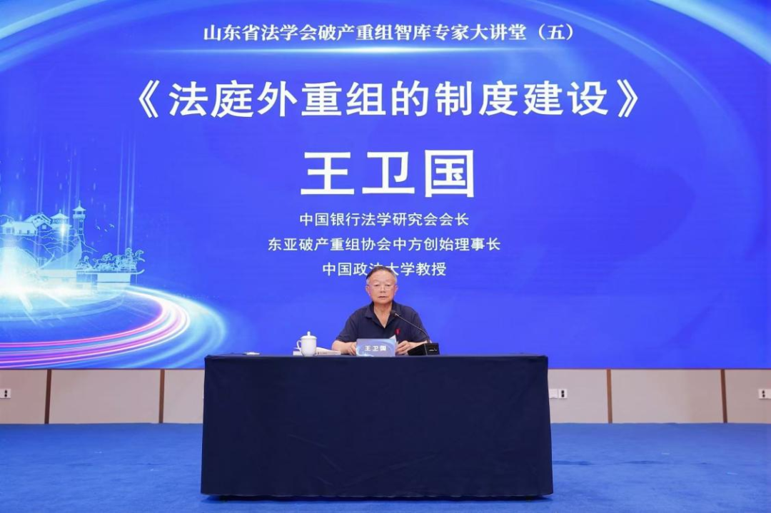 山東省法學會破產(chǎn)重組智庫專家、中國銀行法學研究會會長、東亞破產(chǎn)重組協(xié)會中方創(chuàng)始理事長、中國政法大學教授王衛(wèi)國作《法庭外重組的制度建設》的主旨發(fā)言,系統(tǒng)地從庭外重組的性質、地位、意義、模式以及庭外重組與司法制度的銜接問題等方面講述了庭外重組制度的構建路徑,強調(diào)必須將治理金融風險和企業(yè)的債務困境放在一個非常突出的地位,指出庭外重組的三種模式及制度建設的目標和要素,通過對國內(nèi)外破產(chǎn)制度的實踐進行對比、分析,為危困企業(yè)市場化、法治化拯救提供更堅實的規(guī)則支撐,助力優(yōu)化營商環(huán)境與經(jīng)濟高質量發(fā)展。他通過系統(tǒng)闡釋了法庭外重組制度建設的核心理念與實踐路徑,對庭外重組制度的研究思路進行了深入分析,為庭外重組制度的理論研究和實務問題解決提供啟發(fā)與新的思路。