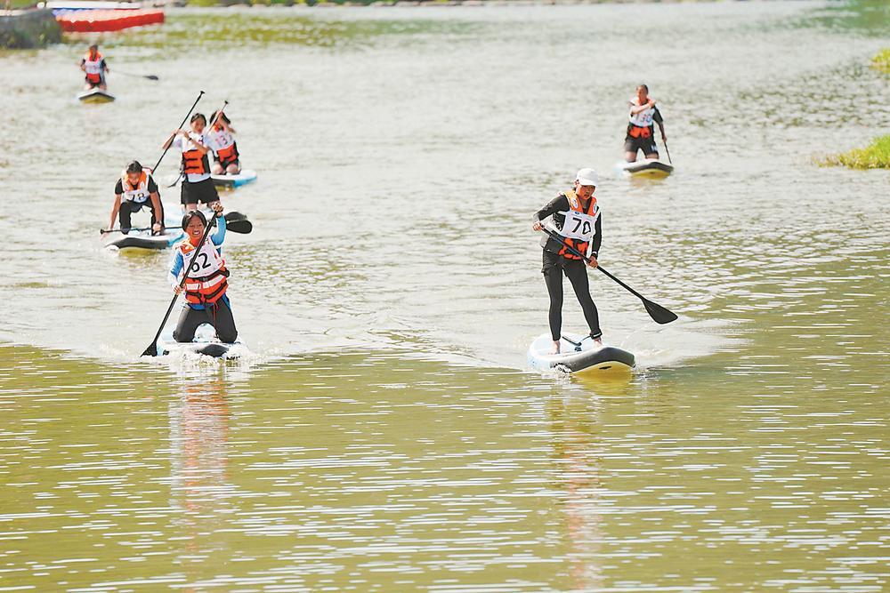 福建省水上運動聯賽(林墩站)比賽期間,選手們劈波斬浪。