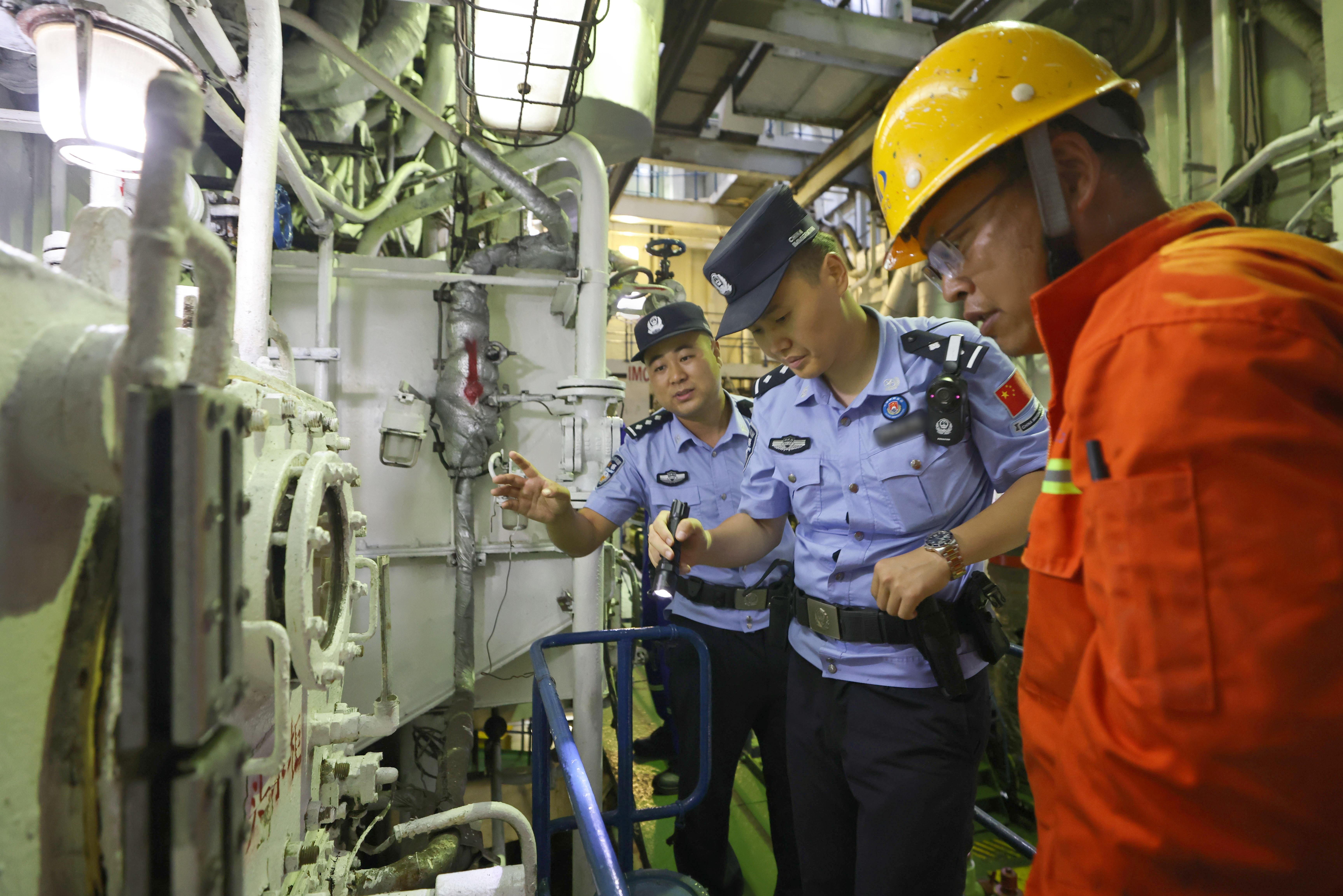 “每一艘船舶出入境前,我們都會第一時(shí)間對機(jī)艙、甲板、生活區(qū)進(jìn)行檢查,現(xiàn)在室外溫度達(dá)30多℃,機(jī)艙內(nèi)超40℃,勤務(wù)結(jié)束后,我們的衣服經(jīng)常濕透,即使天氣再熱,我們也會按照勤務(wù)規(guī)范開展檢查,筑牢海上國門防線?!痹撜緢?zhí)勤二隊(duì)執(zhí)勤民警閆承鑫說道。