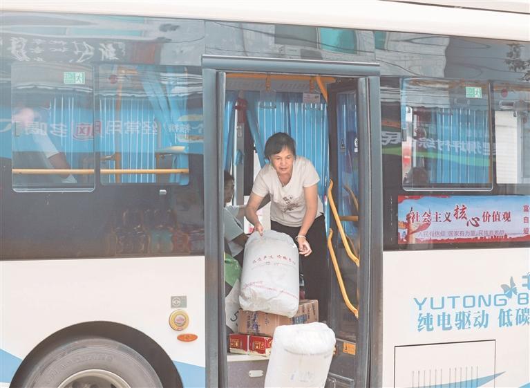 下午3點半,一輛往返于玉屏城區(qū)與新店鎮(zhèn)丙溪村的公交車輛緩緩駛?cè)敕峙渲行?。駕駛員熟練地將大小不一的快遞包裹清點裝車。很快,這些包裹便與乘客一同,踏上了“乘公交下鄉(xiāng)”的行程。