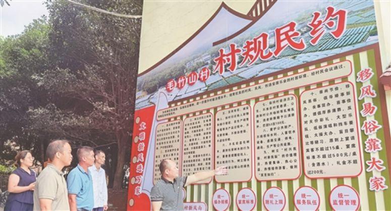 盛夏時(shí)節(jié),在廣西壯族自治區(qū)桂林市全州縣才灣鎮(zhèn)南一村委毛竹山村,村口宣傳欄上嶄新的《村規(guī)民約》格外醒目。曾讓村民愁眉不展的“仔仔債”(當(dāng)?shù)嘏f俗,老人去世時(shí),外嫁女需置辦大量煙酒紅包、點(diǎn)心等“仔仔”,分發(fā)給吊唁親友)已成為歷史。