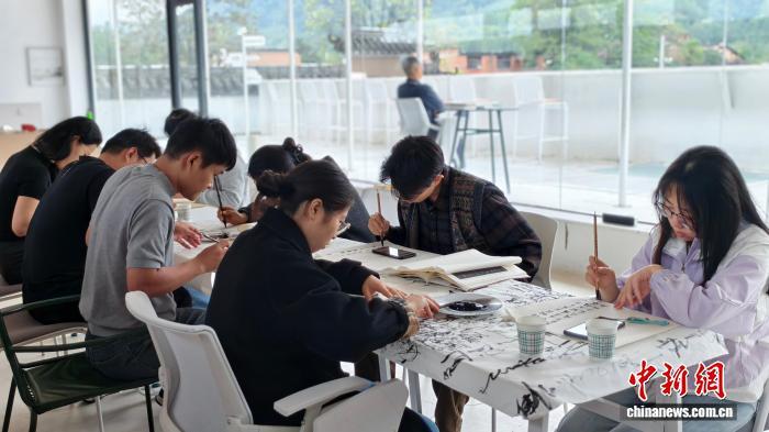 10月7日,秦托邦青年社區(qū)成員正在進(jìn)行書(shū)法體驗(yàn)。受訪者供圖