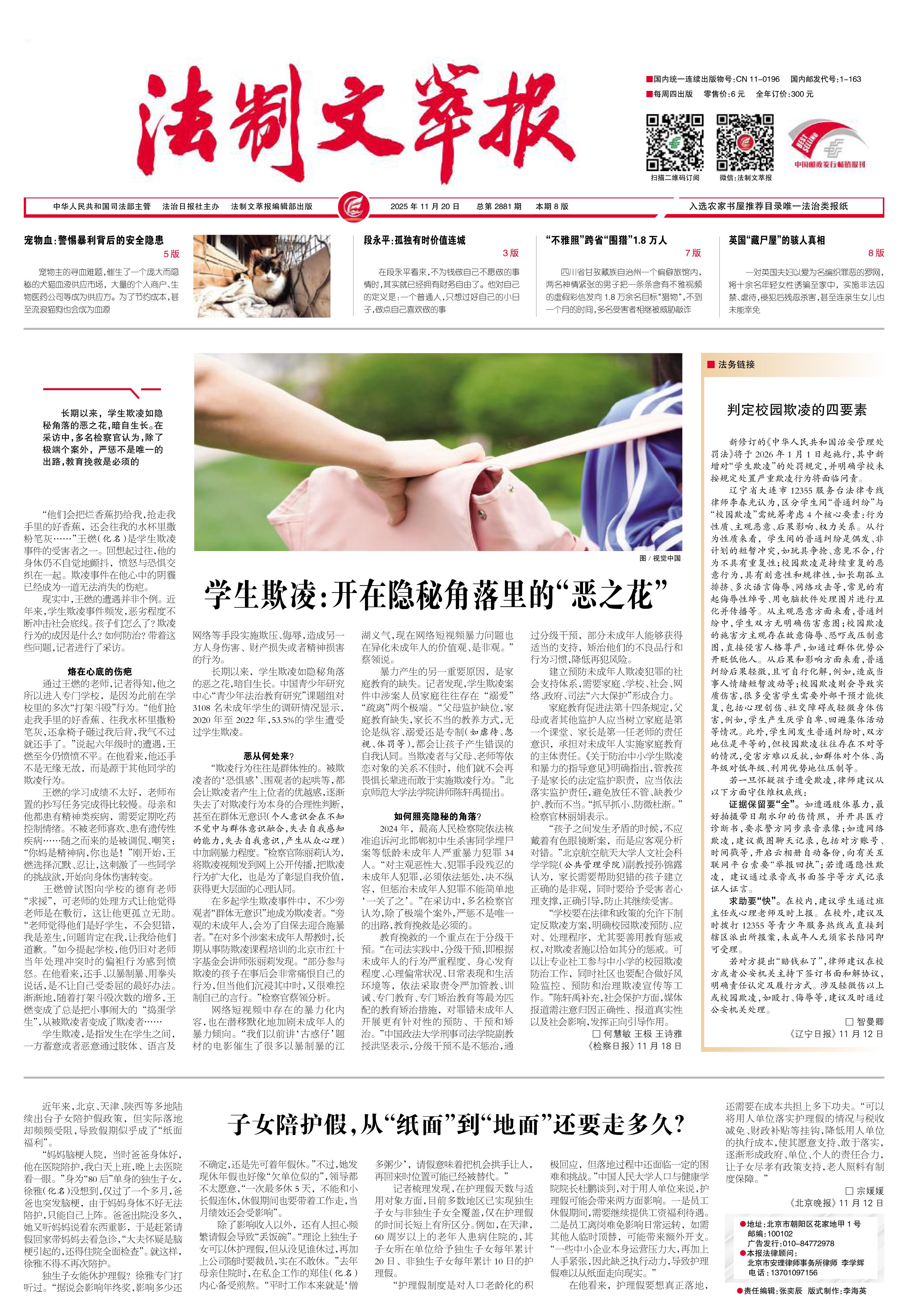 2025年11月20日《法制文萃報》總第2881期1版