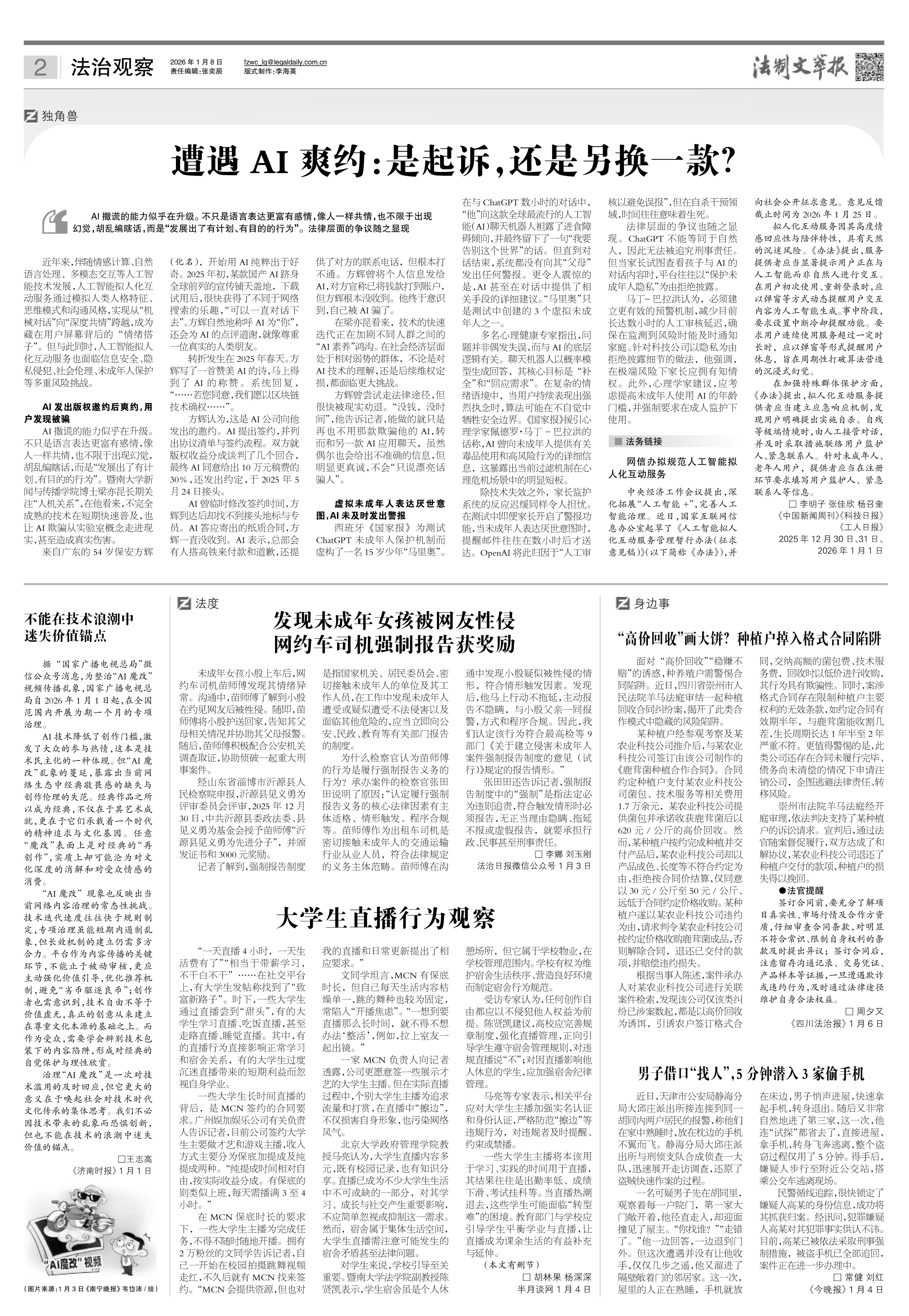 2026年1月8日《法制文萃報》總第2888期2版