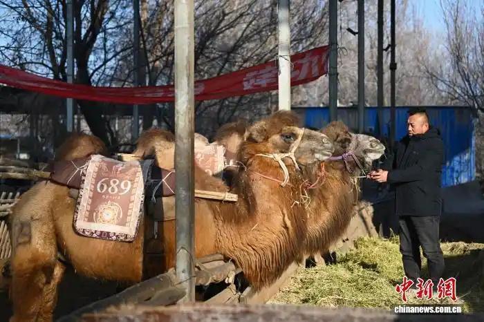 根據(jù)游客到訪情況,冬春季,駱駝們2至3天輪流上班一次。冬季上崗的駱駝并非隨機挑選,而是各有“任務”。趙文龍說,一部分是“調(diào)皮偷懶”的年輕駱駝,遇到體重較重的游客會故意跪地不起,需要通過冬季復訓磨練性子;另一部分則是年齡稍大的駱駝,夏季不讓它們承擔重活,冬季偶爾上崗既能活動筋骨,還能發(fā)揮“老帶新”的作用,指導年輕駱駝適應工作。