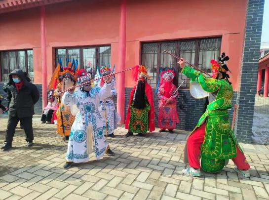 在靈臺(tái)縣什字鎮(zhèn)的文化廣場(chǎng)上,兩位初中生正在排練武社火