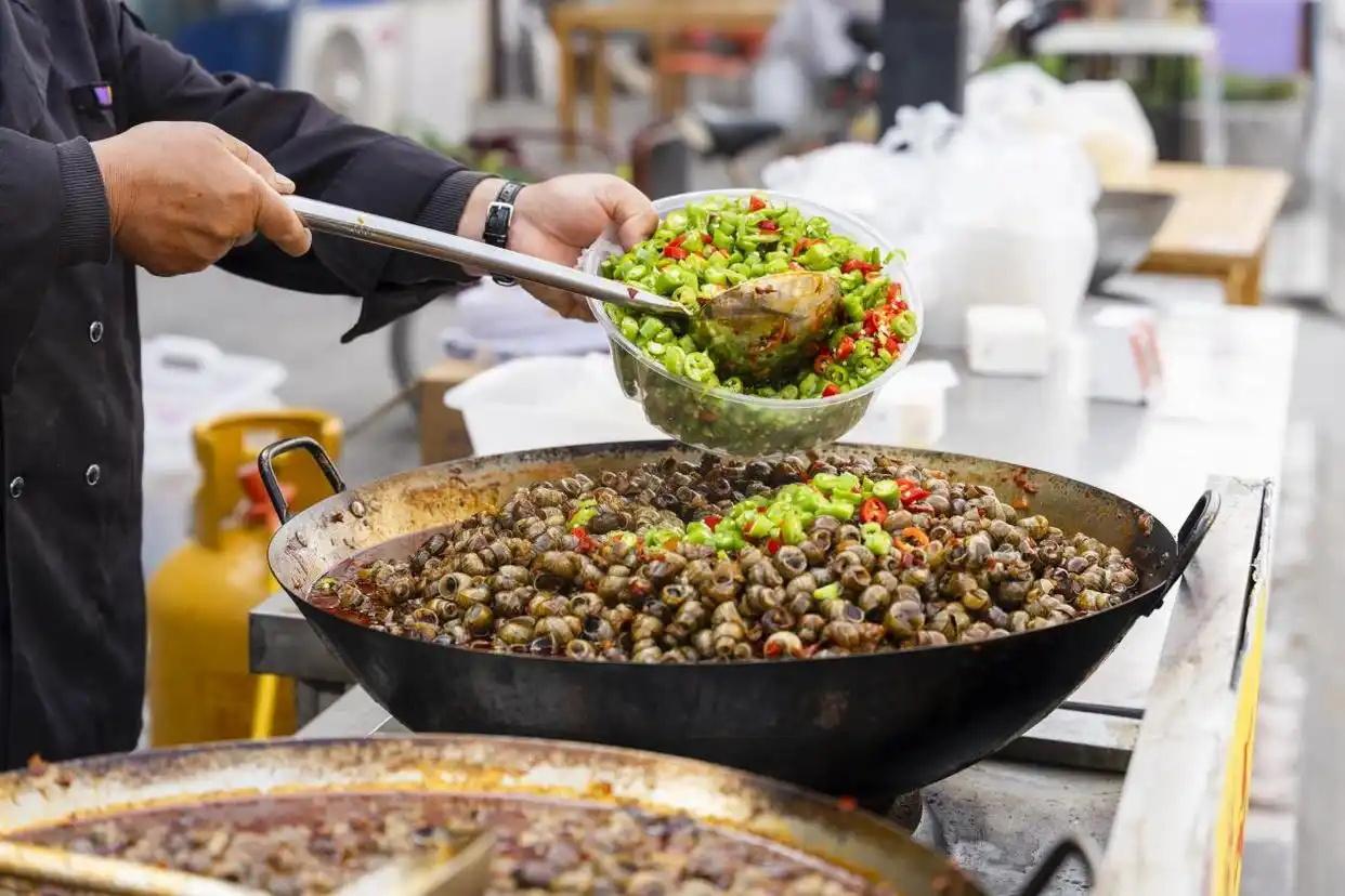攤主正在現(xiàn)場(chǎng)烹飪螺螄(央廣網(wǎng)發(fā) 淮安市洪澤區(qū)委宣傳部供圖)