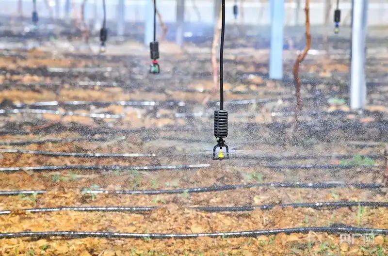 袁中社區(qū)一處農(nóng)業(yè)大棚內(nèi)使用水肥一體化無(wú)人噴灌系統(tǒng)。(央廣網(wǎng)發(fā) 蜀山區(qū)委宣傳部供圖)