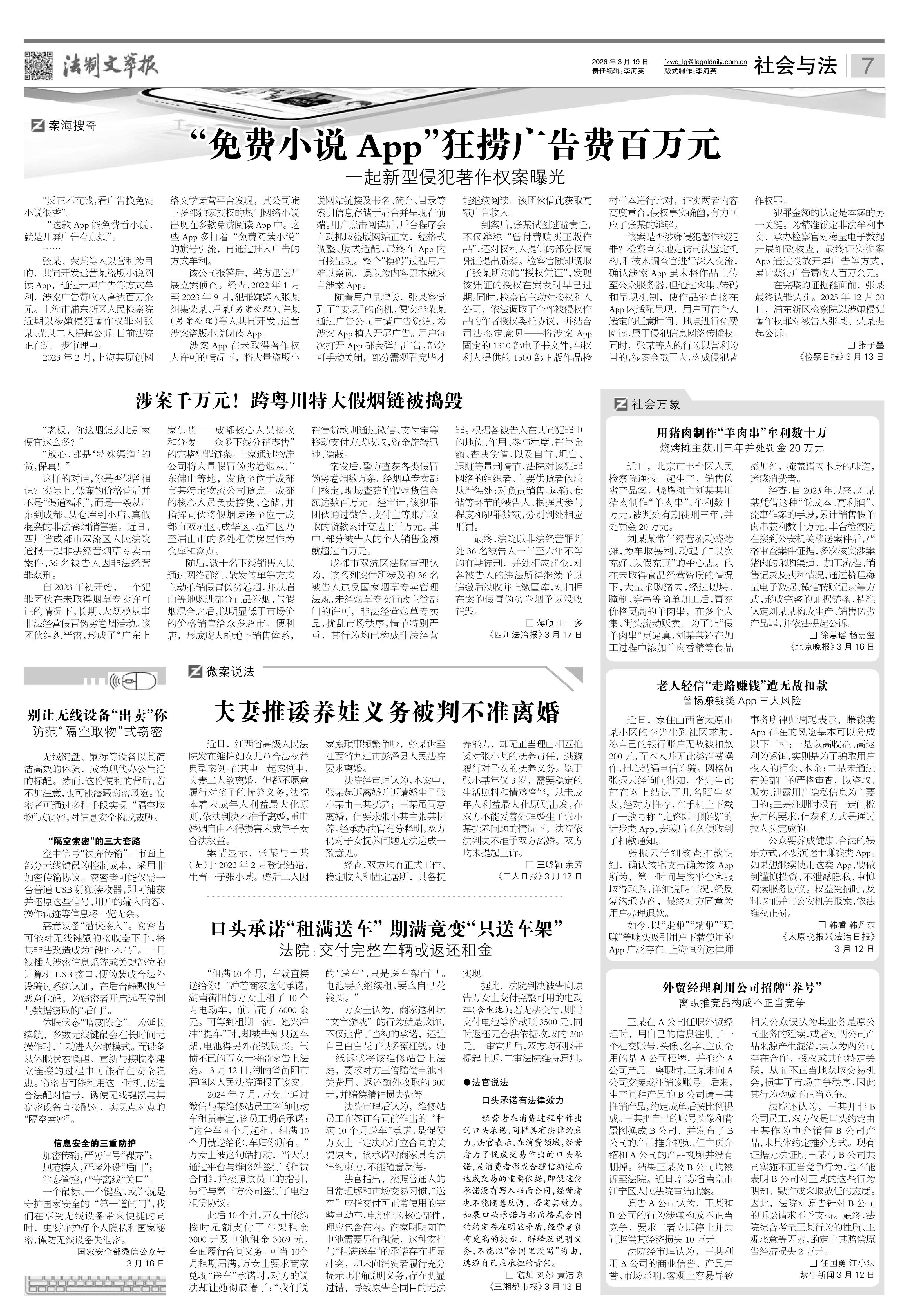 2026年3月19日《法制文萃報》總第2897期7版