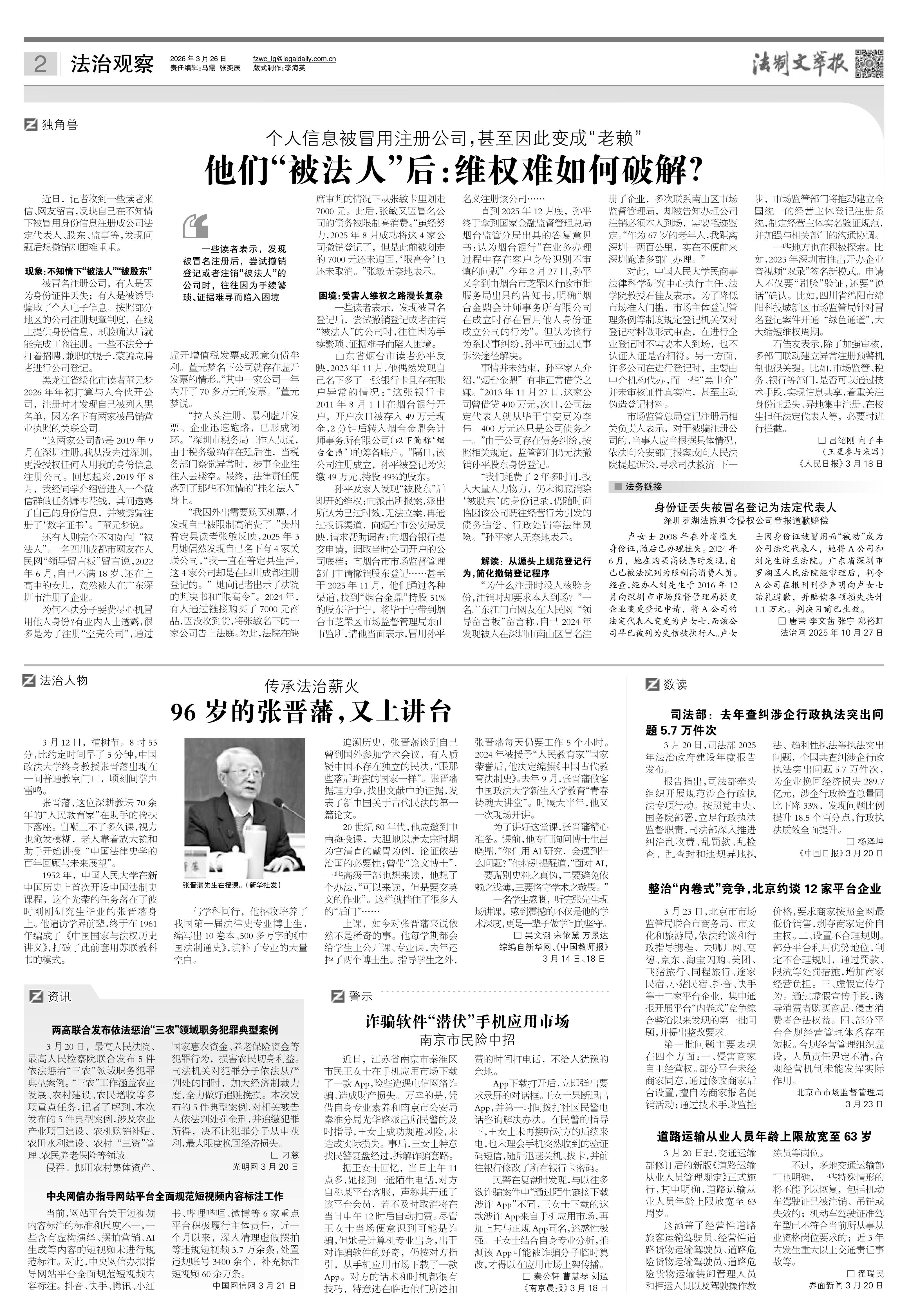 2026年3月26日《法制文萃報(bào)》總第2898期2版