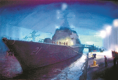 在美國(guó)芝加哥以北50多公里處的密歇根湖畔,有一處名為“21戰(zhàn)斗港”的美國(guó)海軍訓(xùn)練基地。該基地的主體建筑“衣阿華”大樓占地面積超過(guò)14000平方米。大樓內(nèi)常年裝有大量水,你可以把它想象成一個(gè)游泳池,池中停泊著仿照“阿利·伯克”級(jí)驅(qū)逐艦建造的“特雷耶”號(hào)。