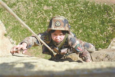 這個掌握通信、裝甲等多項技能的特戰(zhàn)女兵,沒有絲毫猶豫,麻利地攀登到了屋頂。目睹這一幕,這群男兵個個服氣了。