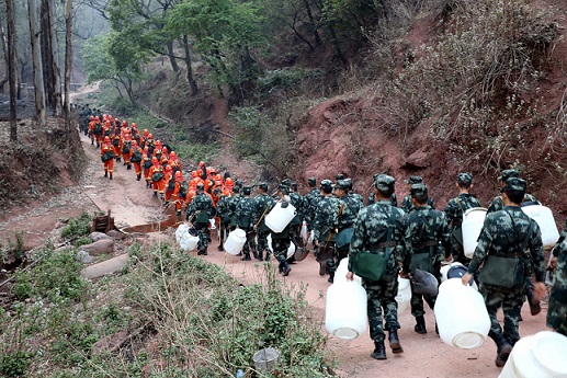 法制網(wǎng)訊 通訊員李結(jié)義 4月1日凌晨2點(diǎn)至4點(diǎn),由于風(fēng)速加大,山火區(qū)域形成了長達(dá)12公里的火線。目前 ,2180人的救援隊(duì)伍正分四路對(duì)瀘山、百花深溝、大營農(nóng)場、液化石油氣儲(chǔ)備站和烏龜塘進(jìn)行撲救,救援力量繼續(xù)調(diào)集飛機(jī)進(jìn)行吊桶滅火作業(yè),地面力量協(xié)同配合,控制火勢,撲滅明火。