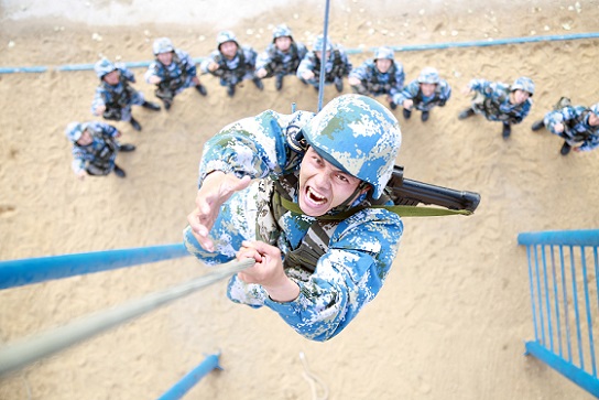 這個(gè)動(dòng)作需要官兵克服極大的心理障礙。在自由落體過(guò)程中,操作繩扣減速的時(shí)機(jī)只有0.1秒,錯(cuò)過(guò)這個(gè)時(shí)間點(diǎn),落地速度就無(wú)法控制,且很有可能受傷。