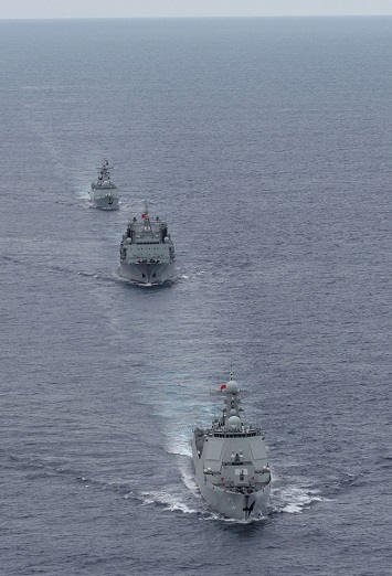 圖為5月14日,海軍第35批護航編隊單縱隊航行。江山 攝