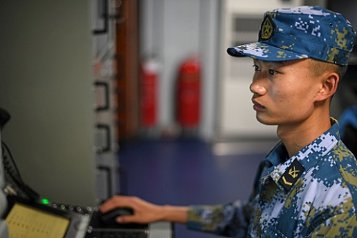 圖為太原艦指控班戰(zhàn)士王晨在戰(zhàn)位執(zhí)更。江山 攝