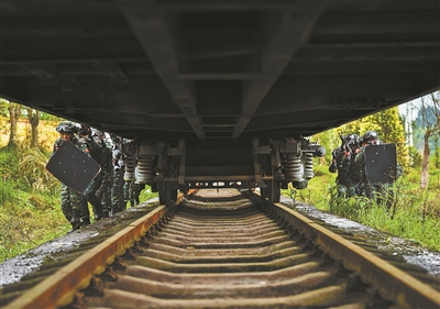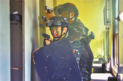 “狙擊手占領(lǐng)有利地形伺機(jī)狙殺目標(biāo),偵察組對(duì)現(xiàn)場實(shí)施嚴(yán)密監(jiān)控,各突擊組隱蔽接‘?dāng)场龊霉魷?zhǔn)備!”在解救火車“被劫持人質(zhì)”演練中,指揮員研判現(xiàn)場態(tài)勢(shì)后,周密部署兵力展開營救行動(dòng)。一個(gè)個(gè)真難嚴(yán)實(shí)的訓(xùn)練課目,考驗(yàn)著特戰(zhàn)隊(duì)員的智能、體能、技能,檢驗(yàn)著真打?qū)崅涞挠?xùn)練作風(fēng)。