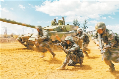 “深入貫徹新時(shí)代軍事戰(zhàn)略方針,全面推進(jìn)練兵備戰(zhàn),實(shí)戰(zhàn)化軍事訓(xùn)練全面加強(qiáng)?!?/p>