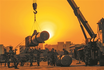 圖④:官兵精準吊裝導彈。