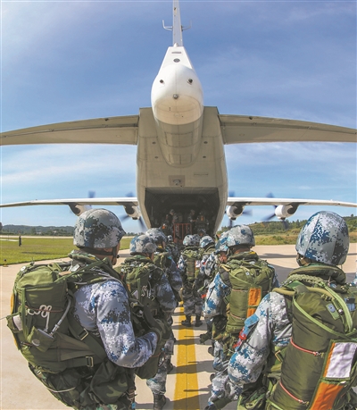 凌晨,急促的哨音打破了營(yíng)區(qū)寂靜。任務(wù)分隊(duì)官兵快速請(qǐng)領(lǐng)武器裝備和傘具,摩托化機(jī)動(dòng)至某軍用機(jī)場(chǎng)。
