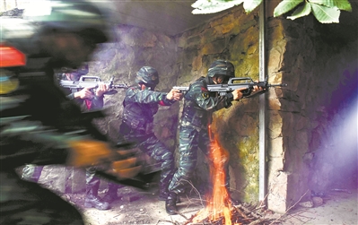 3名“暴恐分子”作案后持槍逃匿。“砰砰砰……”山林深處,突然傳來密集的槍聲。1名“暴恐分子”暴露蹤跡后,與特戰(zhàn)小隊展開火力對峙,隨后逃竄至一處廢棄山洞負隅頑抗。