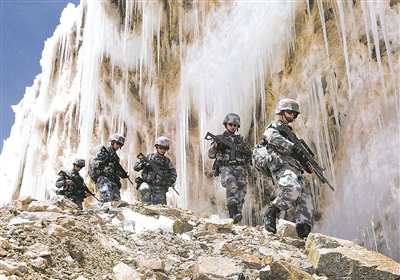 巡邏官兵翻越雪山達(dá)坂艱難前行。