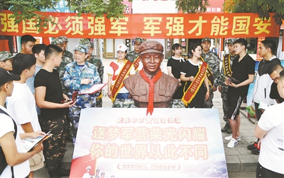 七月下旬,遼寧省遼陽市弓長嶺區(qū)人武部開展“逐夢軍營、榮光閃耀”主題征兵宣傳活動。活動現場,現役軍官、雷鋒宣講團成員等征兵宣傳員在雷鋒塑像前為適齡青年就參軍入伍相關問題進行解答。譚長俊攝