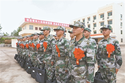保家衛(wèi)國好男兒,綠色軍營獻(xiàn)青春。9月9日,江西省信豐縣新兵起運(yùn)工作正式開始。為克服疫情帶來的影響,該縣組織85名新兵直接由封閉管理的役前訓(xùn)練基地出發(fā),奔赴祖國各地。圖為新兵們列隊(duì)做好出發(fā)準(zhǔn)備。蘭善喜攝