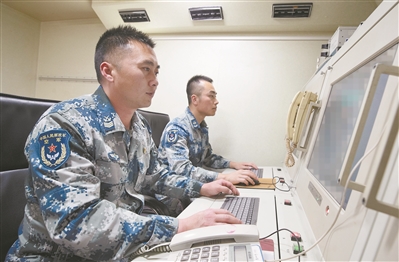 雷達(dá)操縱員沉著應(yīng)對(duì)“敵情”。