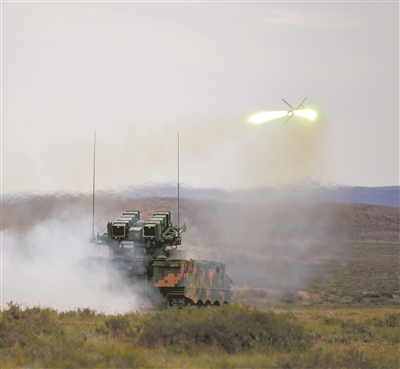另一作戰(zhàn)地域,面對(duì)藍(lán)方坦克火力點(diǎn)猛烈打擊,紅方進(jìn)攻受阻?!?1,我是07,請(qǐng)求支援!”話音剛落,導(dǎo)彈呼嘯而出,直撲“敵”坦克火力點(diǎn)。據(jù)悉,這是該旅剛列裝不久的某新型反坦克導(dǎo)彈武器系統(tǒng)首次參演,即取得4發(fā)4中的佳績(jī)。