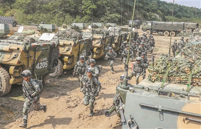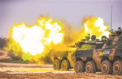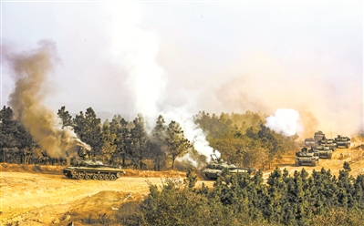 紅方偵察分隊抵近藍(lán)方前沿陣地,迅速傳回“敵情”。指揮所果斷下令,指揮炮兵分隊、電子對抗分隊、陸航火力和步兵突擊車攻擊群打出一套“組合拳”,對藍(lán)方陣地實施猛烈攻擊?;鹆Υ驌暨^后,藍(lán)方殘余力量依托有利地形負(fù)隅頑抗。抓住時機,紅方前沿突擊隊順勢展開強攻,在藍(lán)方火力封鎖區(qū)“撕”開一個突破口,成功占領(lǐng)陣地。