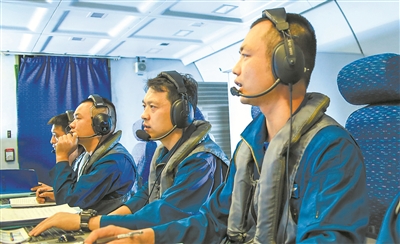 任務(wù)艙內(nèi),雷達(dá)觀察員對“敵情”信息和水面目標(biāo)活動情況仔細(xì)篩選研判,為偵別目標(biāo)提供支援。