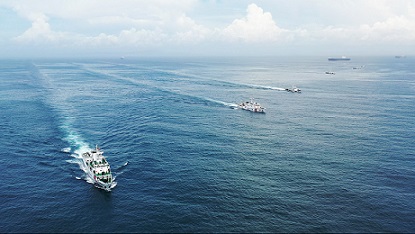 圖為海警艦艇編隊(duì)在轄區(qū)海域巡邏。中國(guó)海警局供圖