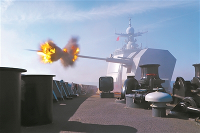 “射擊!”編隊(duì)指揮員一聲令下,各艦主炮相繼對(duì)來襲“敵”目標(biāo)實(shí)施火力打擊。一時(shí)間,海面炮聲隆隆,硝煙彌漫。