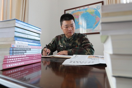 圖為王雪山精學(xué)深悟軍事訓(xùn)練會(huì)議精神。賈斌 攝